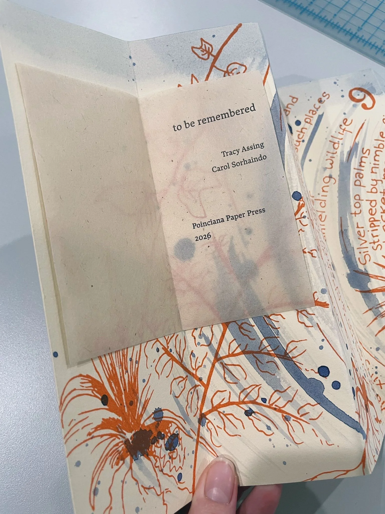 Only twenty copies were made and introduced to the public on February 14, 2026. Only a few copies are currently available for purchase. For inquiries: sonia@poincianapaperpress.com.