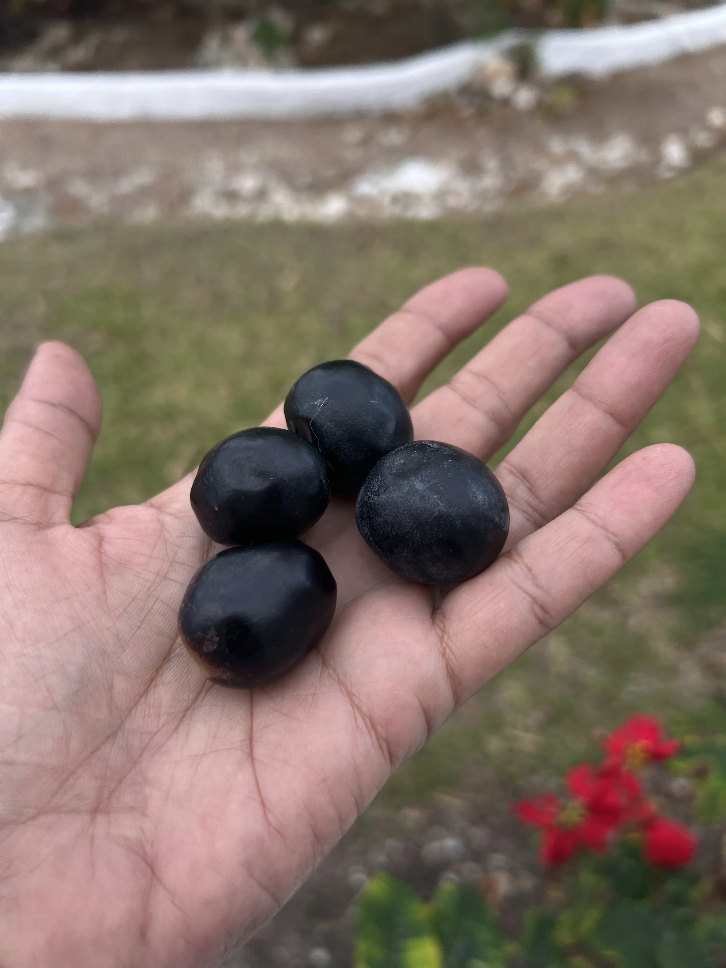 The shrub from which the fruit sprung was regularly trimmed and came as high as my waist. The unripened fruit resembled something we call “fatpork” in Trinidad. But fatpork was usually pink and white.